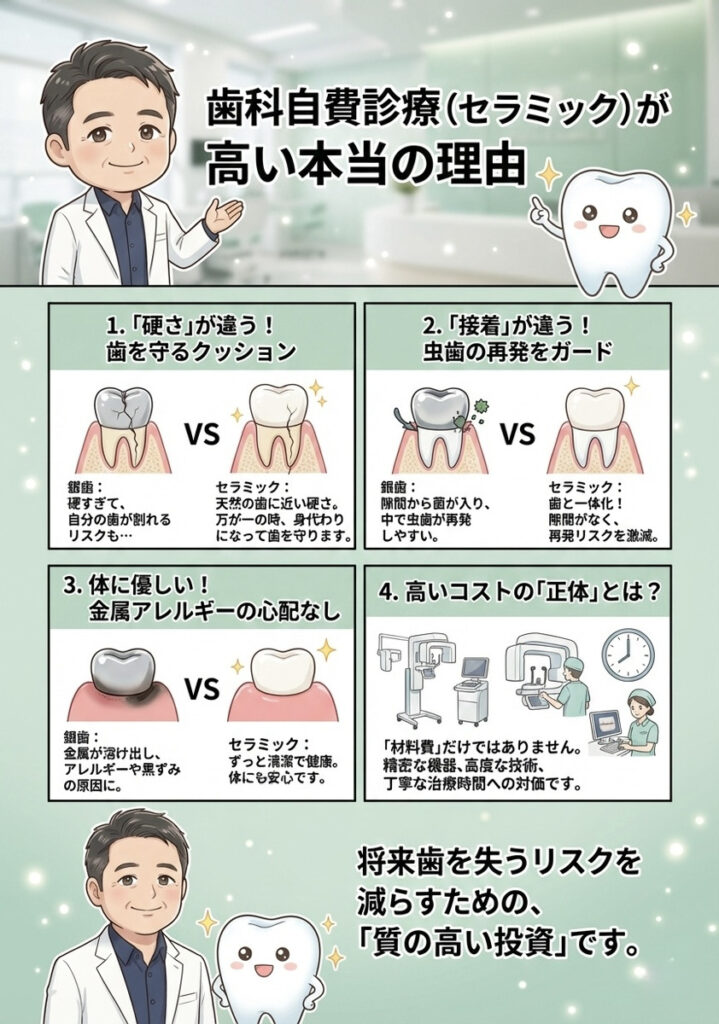 なぜ「硬い銀歯」より「セラミック」が良いとされるのか、その理由を分解して解説します。